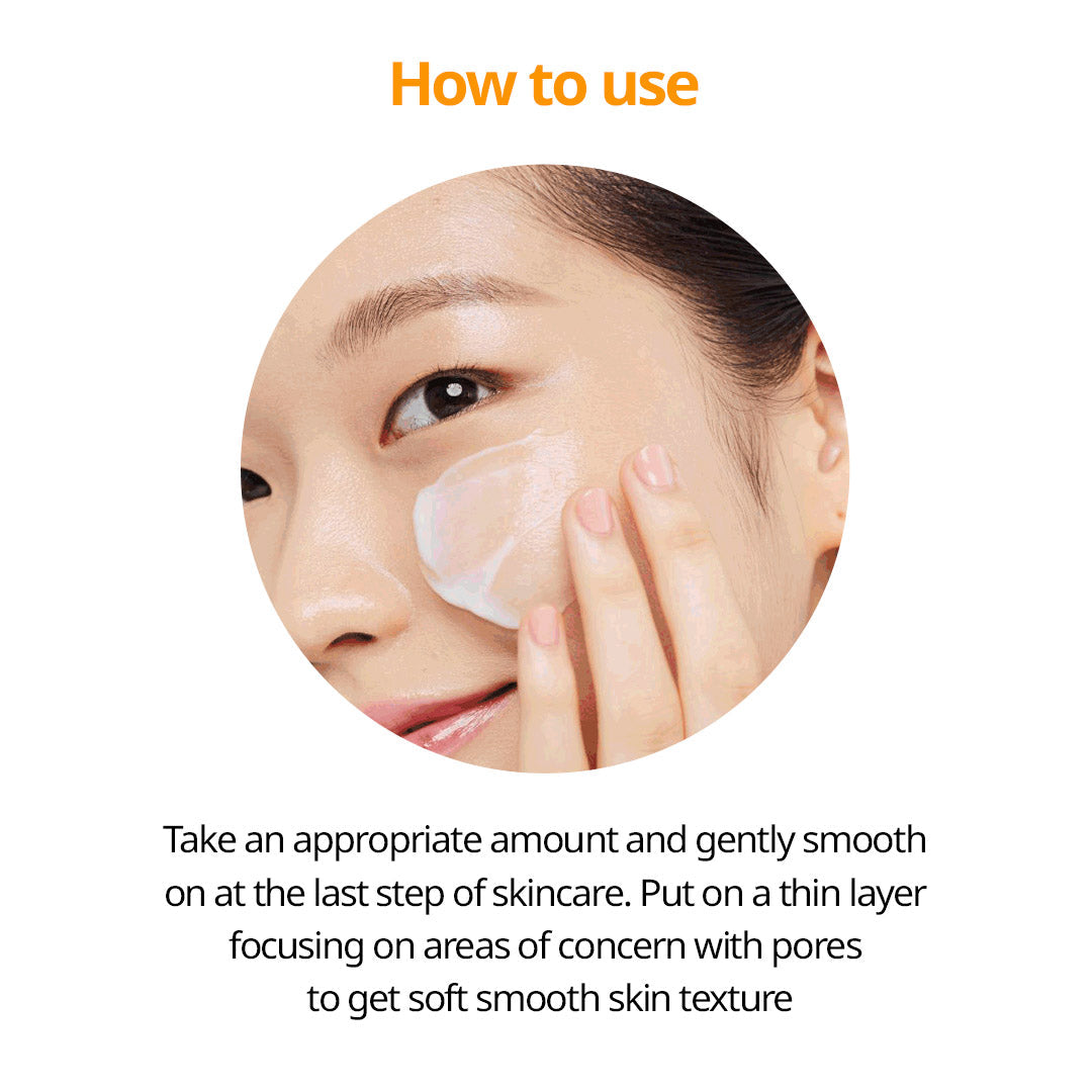 [Directions] Apply desired amount on face at the last step of skincare. Apply on areas with visible pores for a softer, smoother skin.